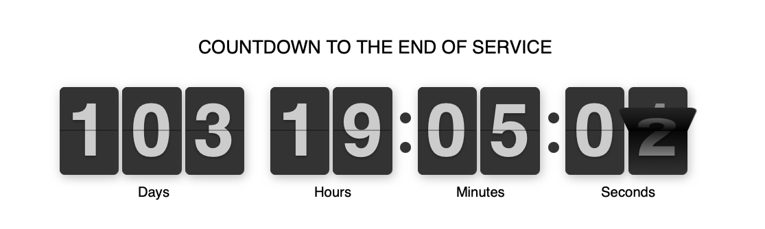 We've got exactly 103 DAYS OF SERVICE left. Come get all the JOY you can on our little space ship before it's gone!!!