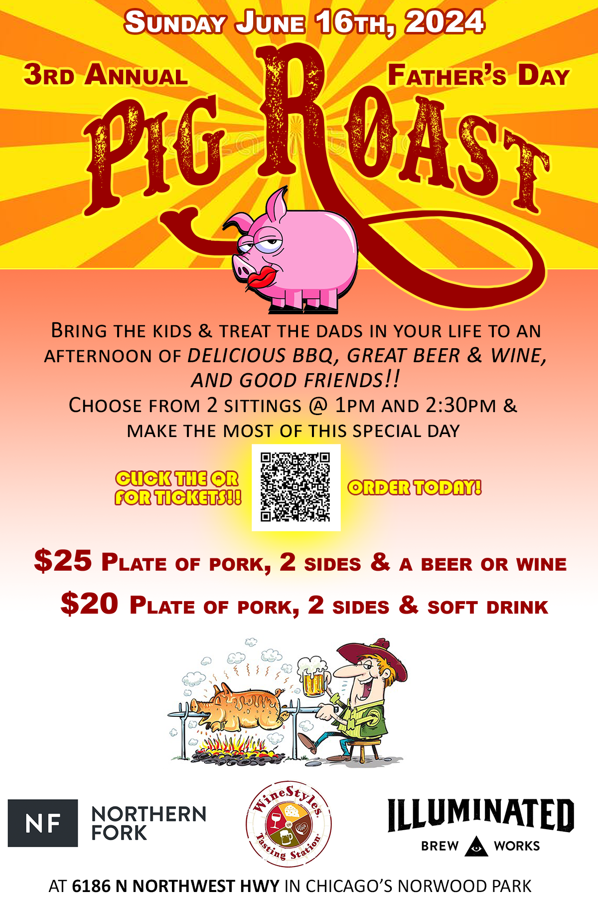 It's time again for our Father's Day Whole Hog Pig Roast with our friends at WineStyles and Northern Fork. This is always a great way to let your Dad forget about all the terrible things you've put him through during the rest of the year.
