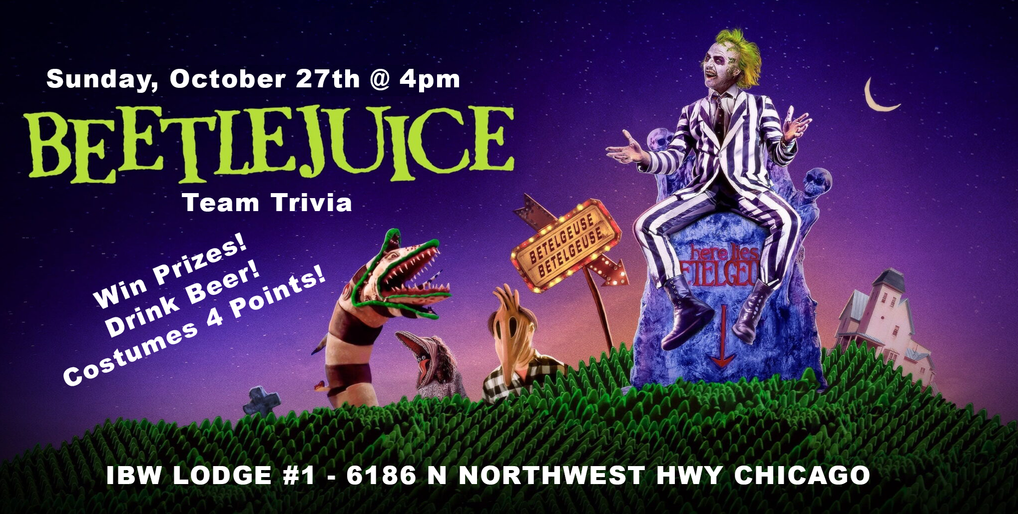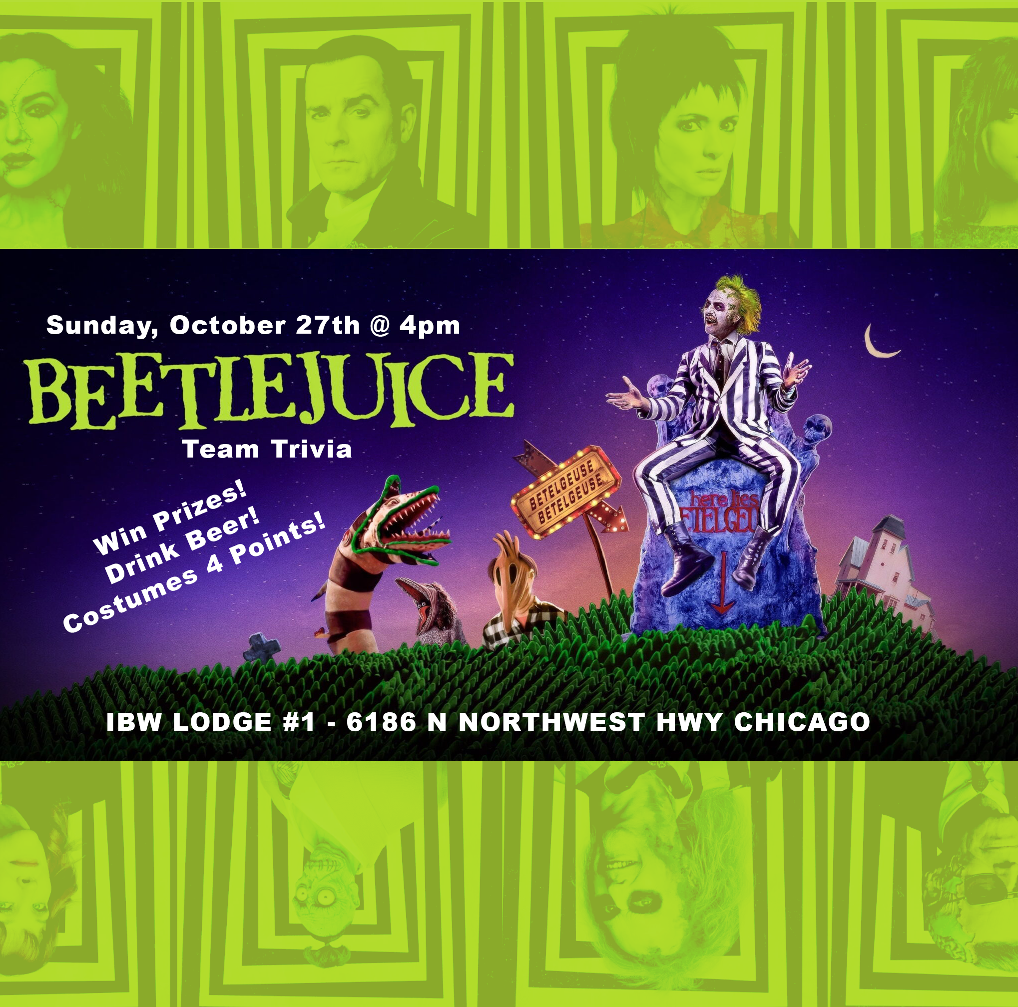 OH! Also... on SUNDAY OCTOBER 27TH we've got... wait for it... BEETLEJUICE THEMED TEAM TRIVIA. Oh boy, that's gonna be fun on a bun.
